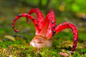 Clathrusruber is sometimes called “Devil’s Fingers” or “Octopus Stinkhorn” due to its unique appearance and odor.